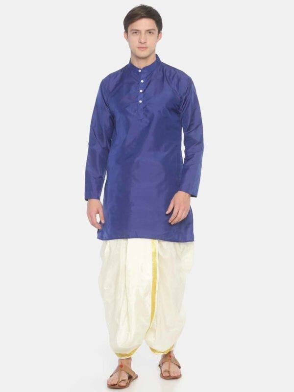 Men often pair it with an angavastram (shawl) draped over the shoulders. Though modern clothing has largely replaced the dhoti in everyday wear, it continues to hold significance in ceremonial occasions, particularly among Hindu communities.