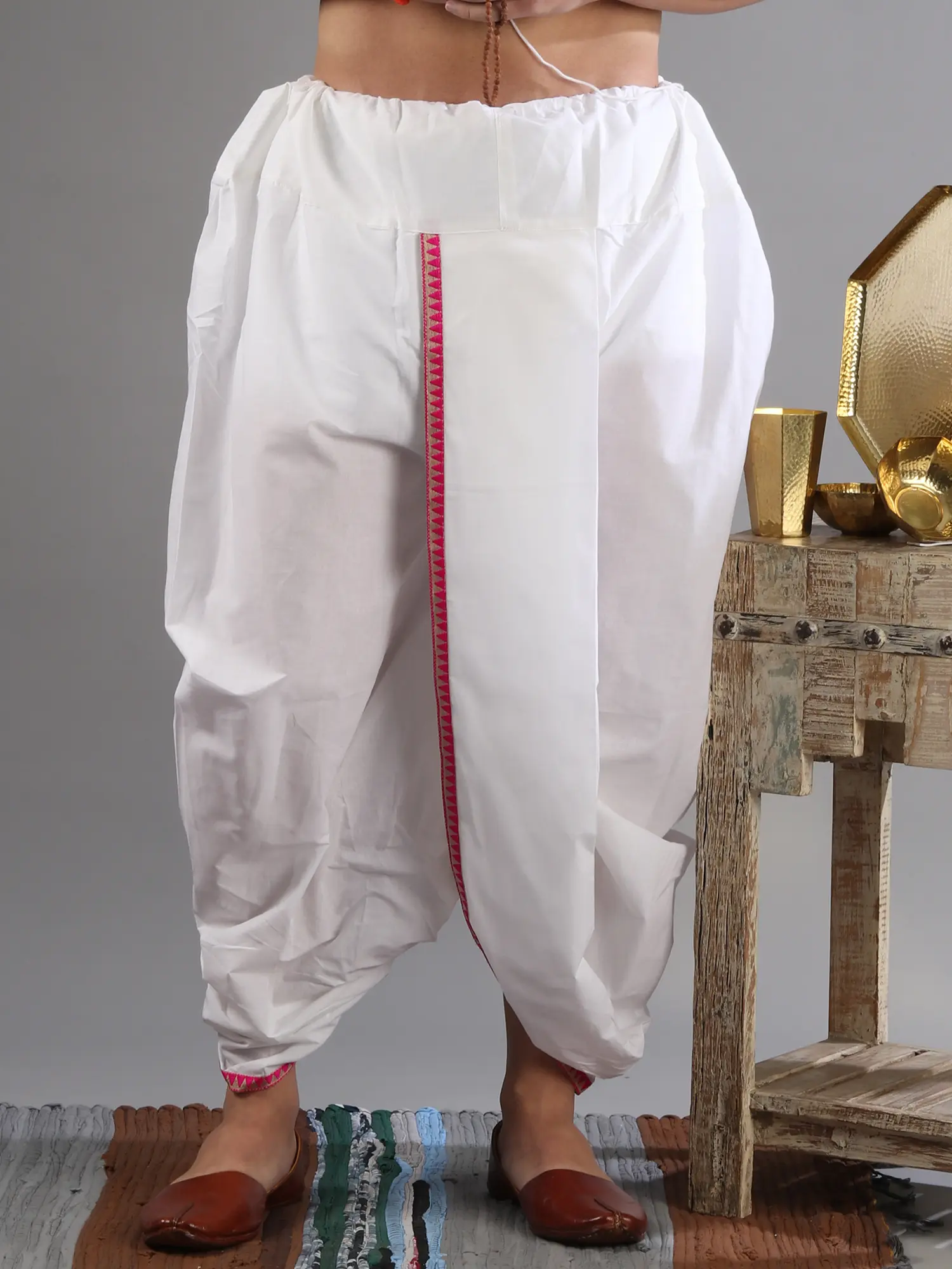 Worn with a pagri or turban, the white dhoti is often seen during formal religious gatherings or ceremonies.